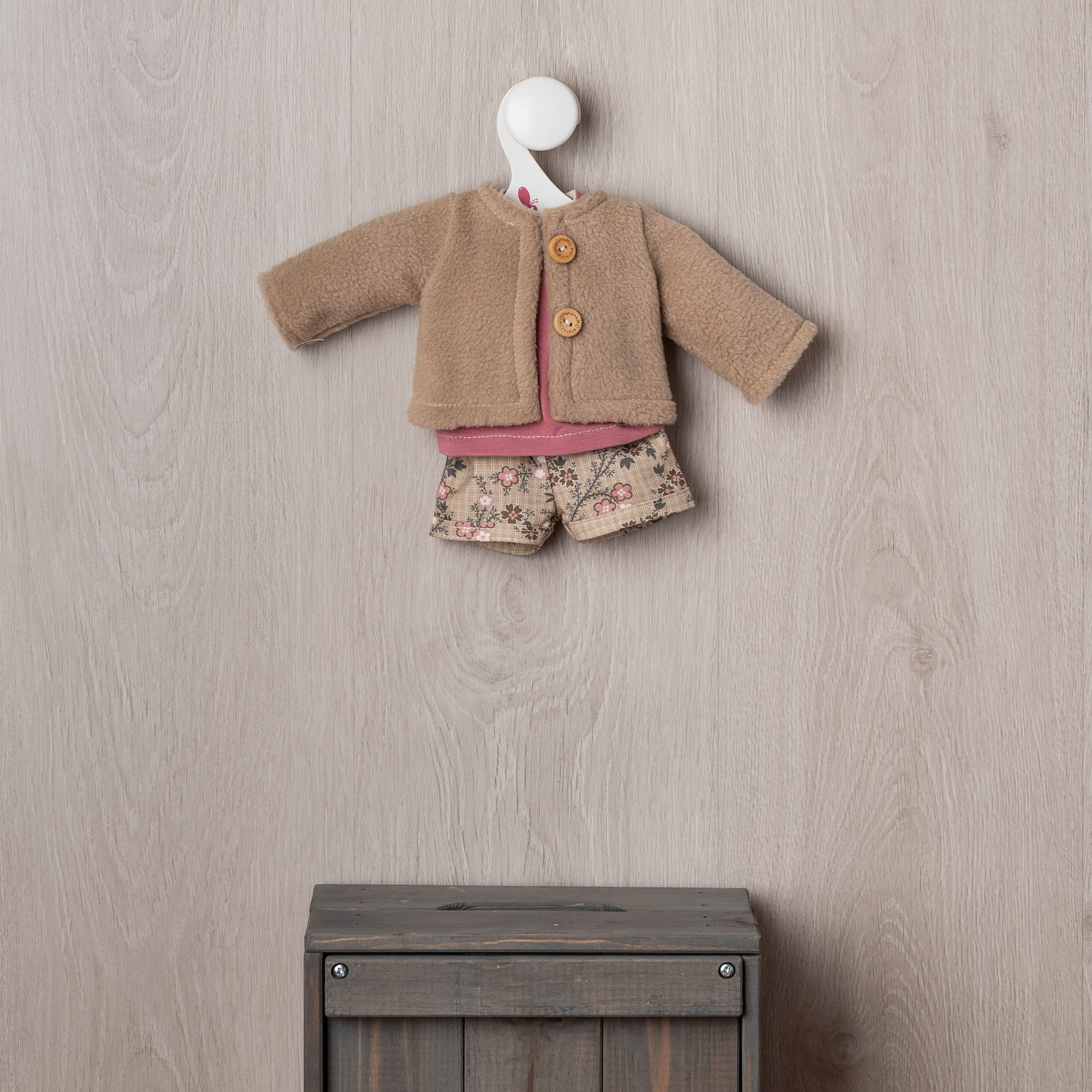 Conjunto de pantalón corto con estampado de flores, camisa y chaqueta polar.