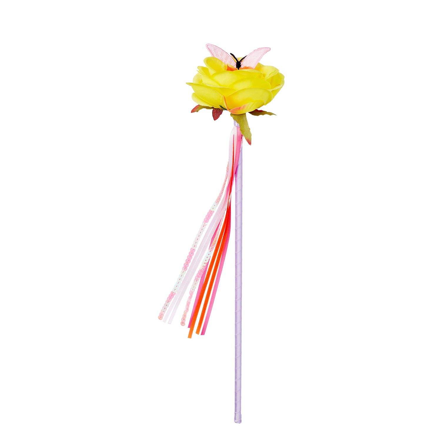 Incluye una hermosa capa de tul con motivos de mariposa, una diadema a juego y una varita mágica, perfectos para crear un look lleno de fantasía y color.