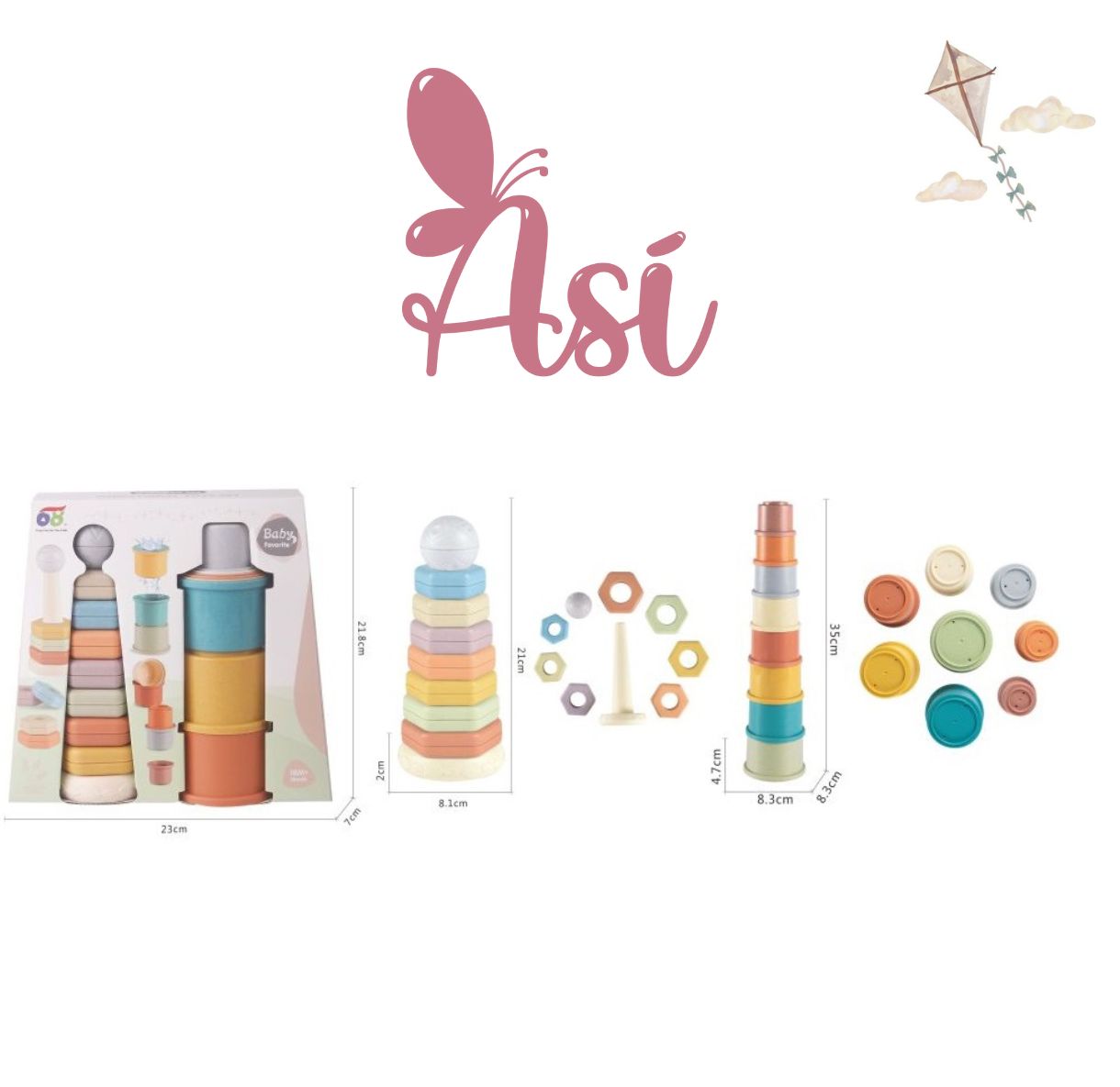 Este juego educacional incluye un set de dos torres de apilables con piezas de distintos tamaños que ayudan a los más pequeños a desarrollar habilidades motoras, coordinación ojo-mano y conceptos como el tamaño y el equilibrio