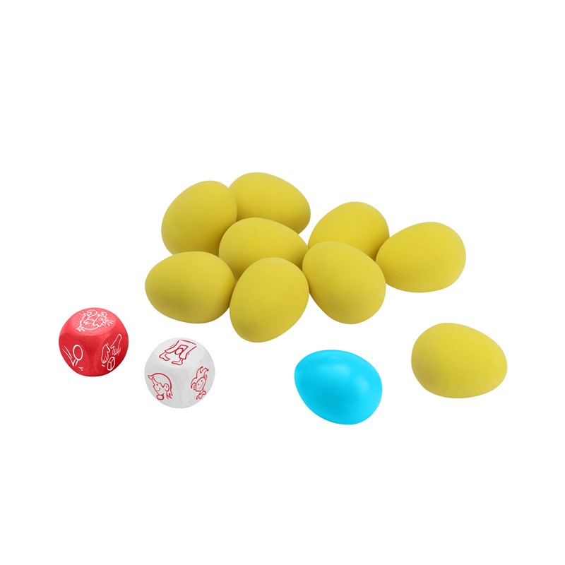 ?? Contenido: 9 huevos de goma, 1 huevo de madera, 1 dado, instrucciones