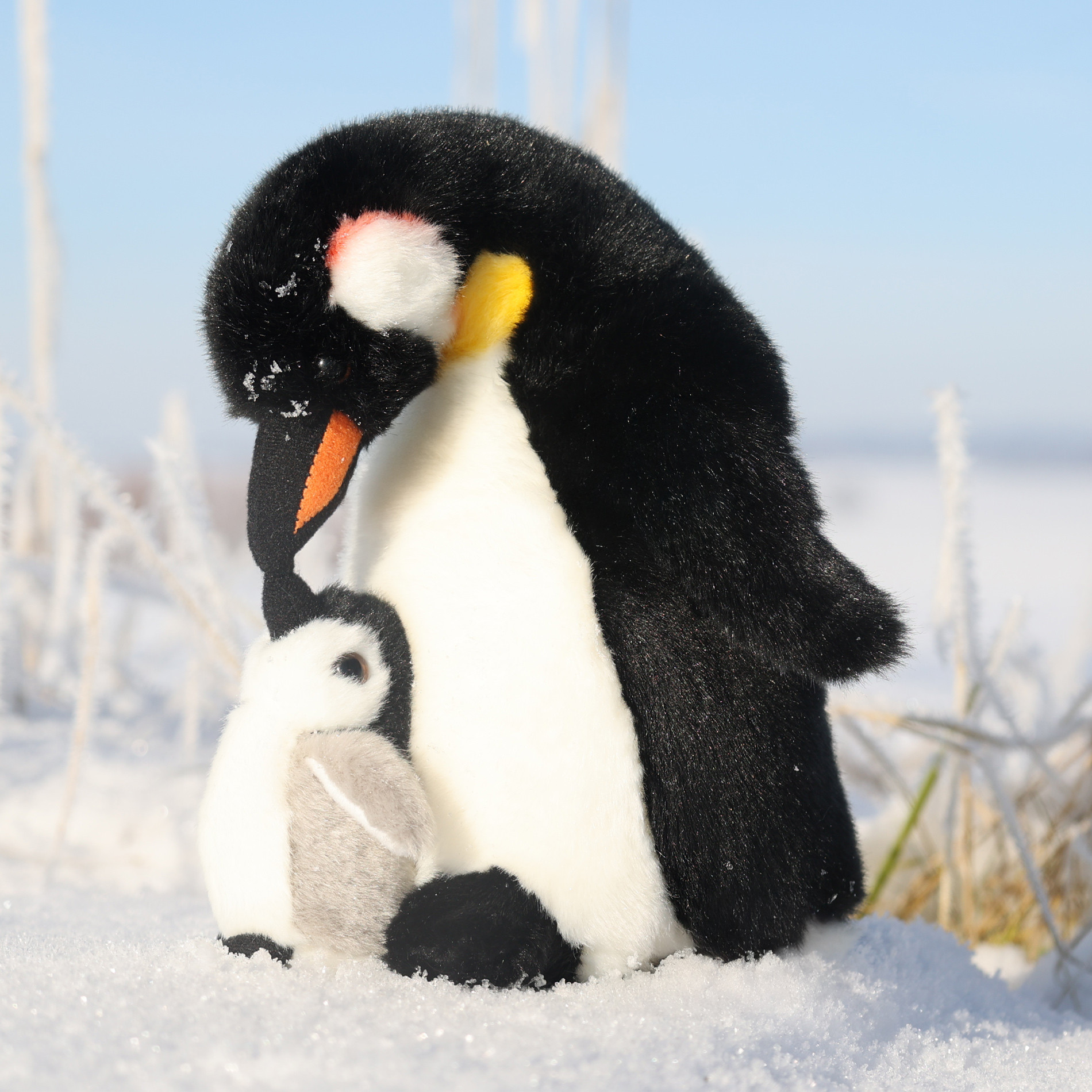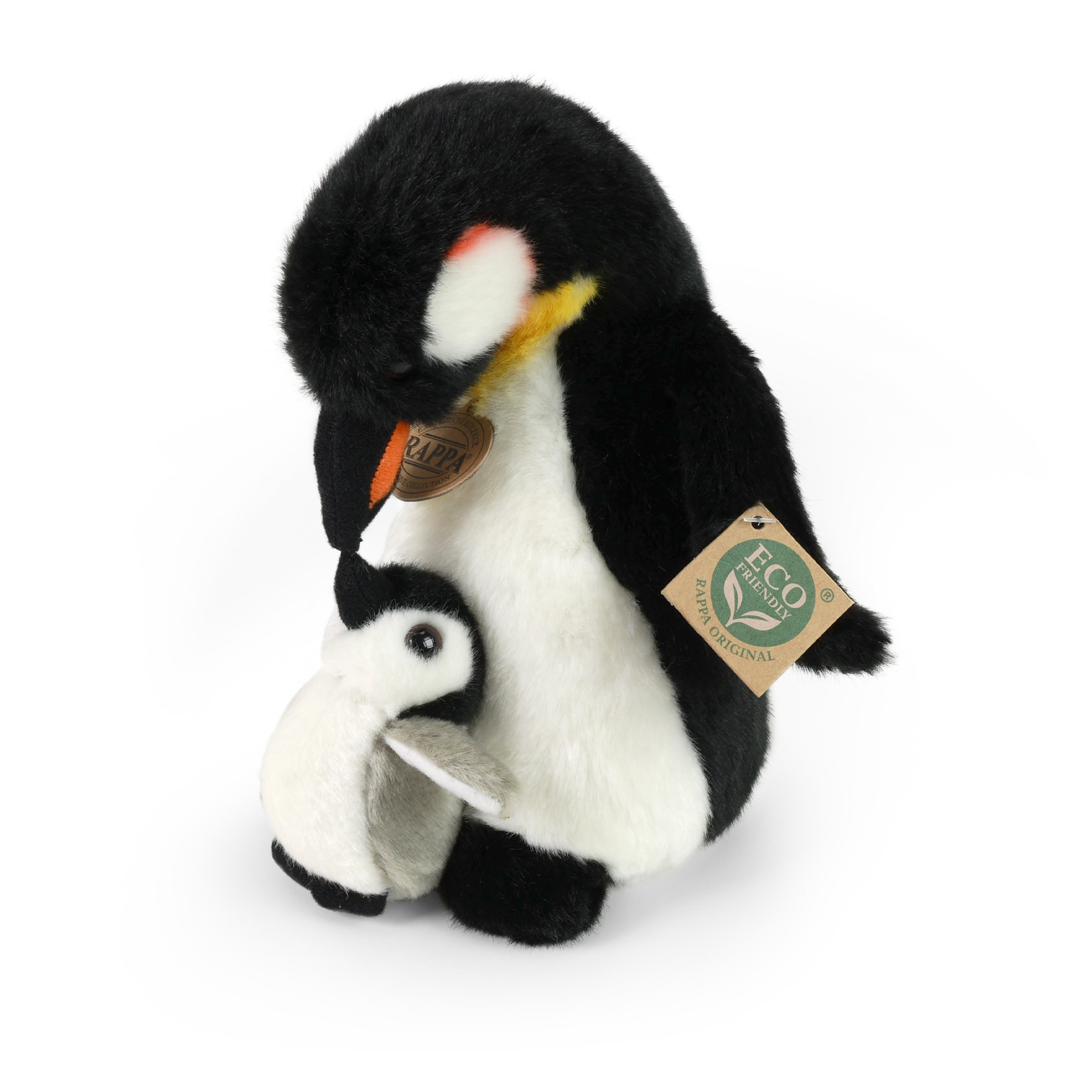 Un pingüino de peluche con su cría mide 22 cm y está hecho de felpa de alta calidad, formando parte de la Colección Exclusiva de peluches de Rappa. Este adorable pingüino es perfecto para abrazar, jugar y coleccionar, y también es un regalo ideal tanto para niños como para adultos.