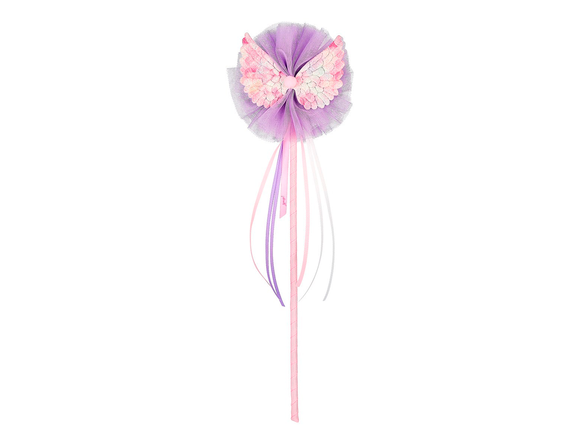 Añade un toque de magia celestial con nuestra Varita Rosa, adornada con un suave pompón de tul morado y encantadoras alas de ángel. Este accesorio mágico es perfecto para dar rienda suelta a la imaginación y hacer que cada momento sea especial.